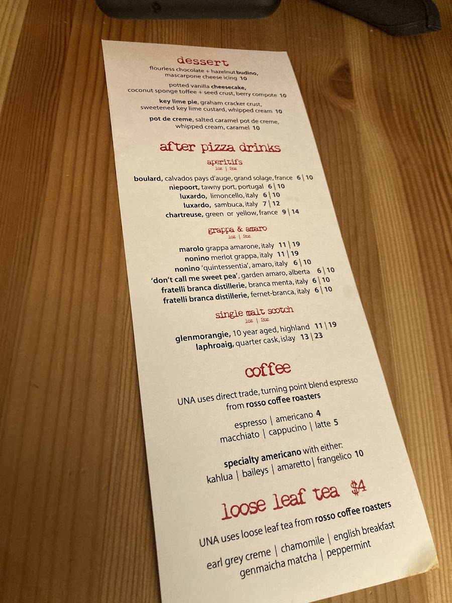 Stumbled across this Una location and we had a fantastic time during lunch. We tried the featured Breakfast Pizza and it was delicious. Drinks were well done too!
