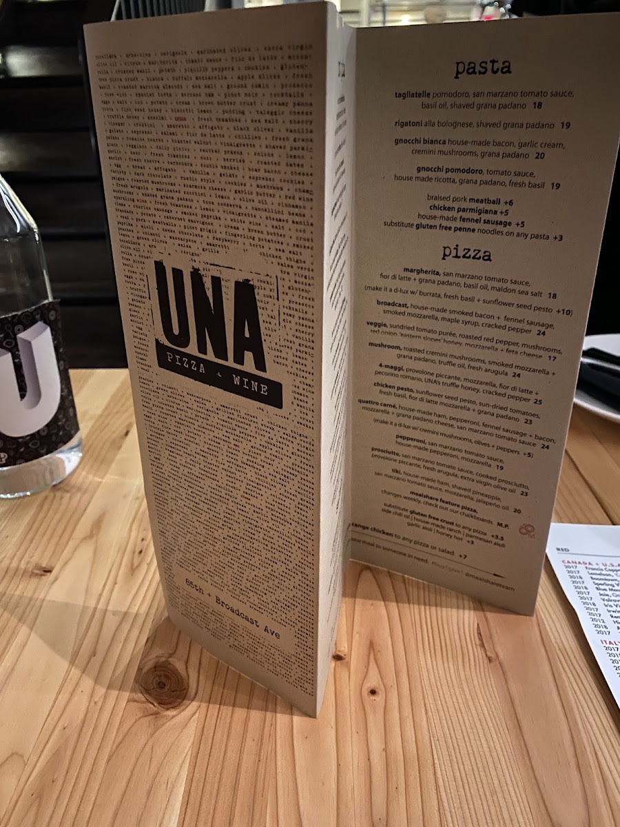 Una is hands-down one of my go-to spots—for both work lunches and personal catch-ups. Whether I’m meeting a client or grabbing a bite with friends, I know I can count on consistently great food and service every single time. The pizza? Always on point. Crisp, flavourful, and creative without being over the top. The salads and small plates are just as good—fresh, thoughtful, and perfectly portioned. And the team? Friendly, fast, and dialed in, whether the place is packed or quiet. There’s something about Una that just works. It’s the kind of place you keep coming back to because it never lets you down. Big fan.